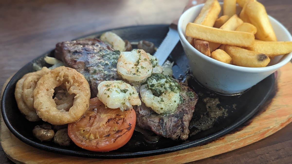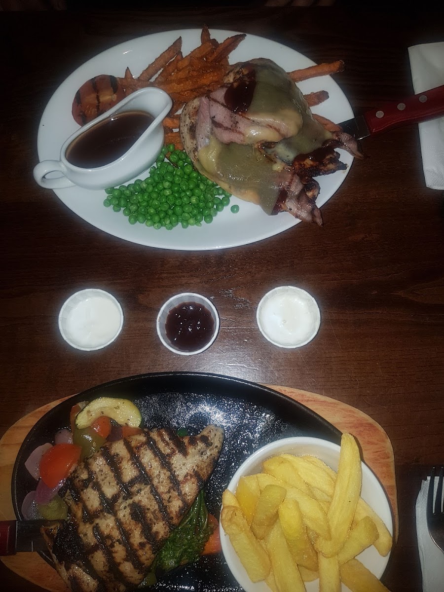Popular dishes like the Sirloin Steak, Surf and Turf, and the Hunter's Chicken & Chicken Sizzler are guaranteed to satisfy your taste buds. If you're in the mood for something lighter, their Nachos Starter and Halloumi and Chips are great choices. For dessert, don’t miss the indulgent Chocolate Fudge Cake or the classic Sticky Toffee Pudding. You can also enjoy their vegan-friendly Vegan Cottage Pie for a plant-based option.